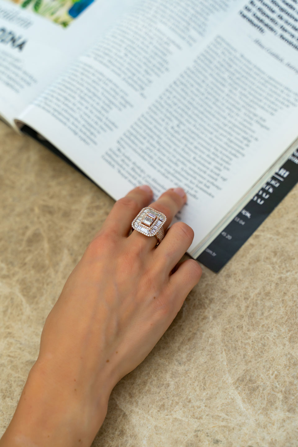 This design adds a luxurious and elegant appearance to the ring, making it a standout accessory for both special occasions and everyday wear. The brilliance of the diamonds harmonizes perfectly with the gold, enhancing its overall sophistication.