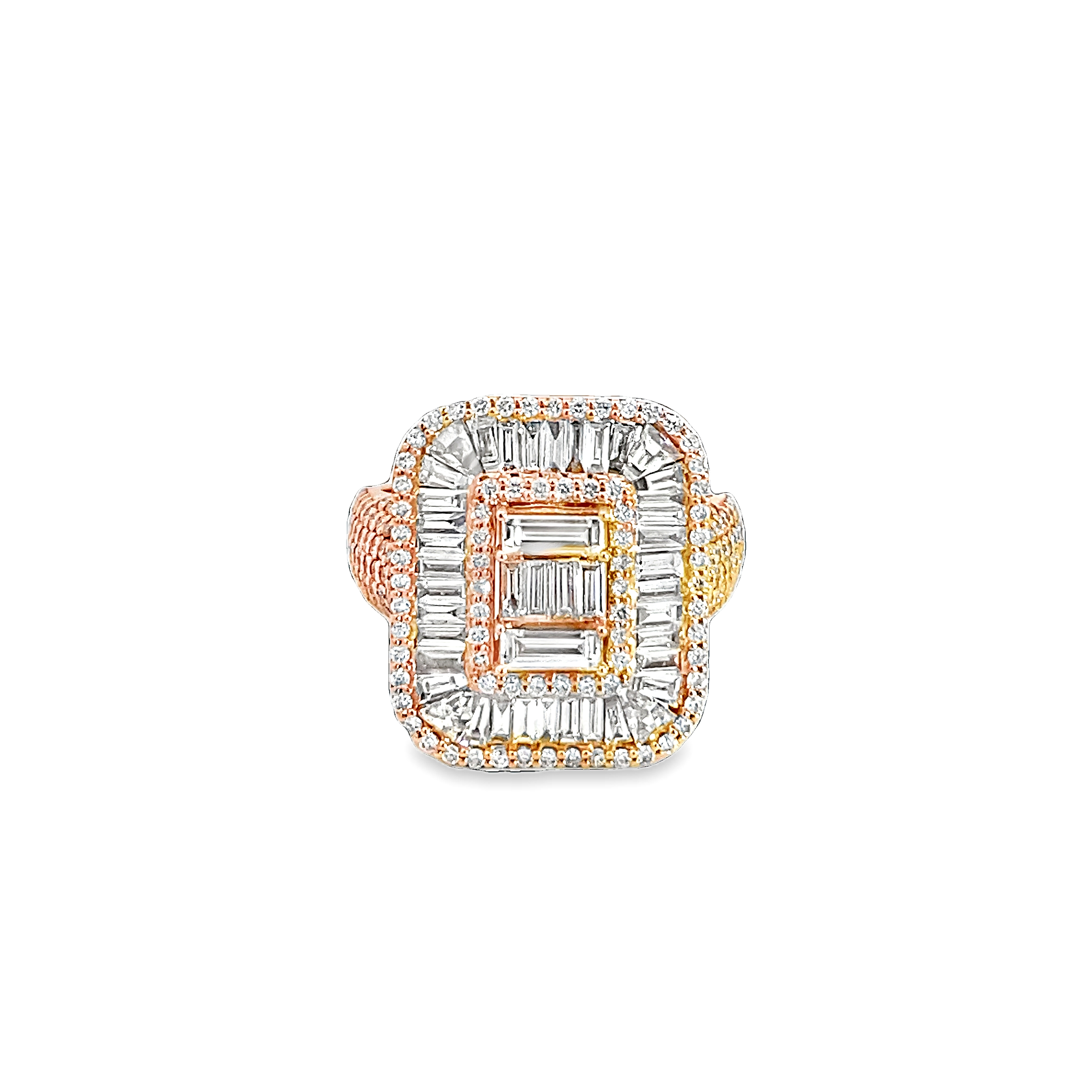 This ring is crafted from 14K gold and has a total weight of 10.48 grams. It features a stunning 3.9-carat diamond at its center, surrounded by smaller diamonds.