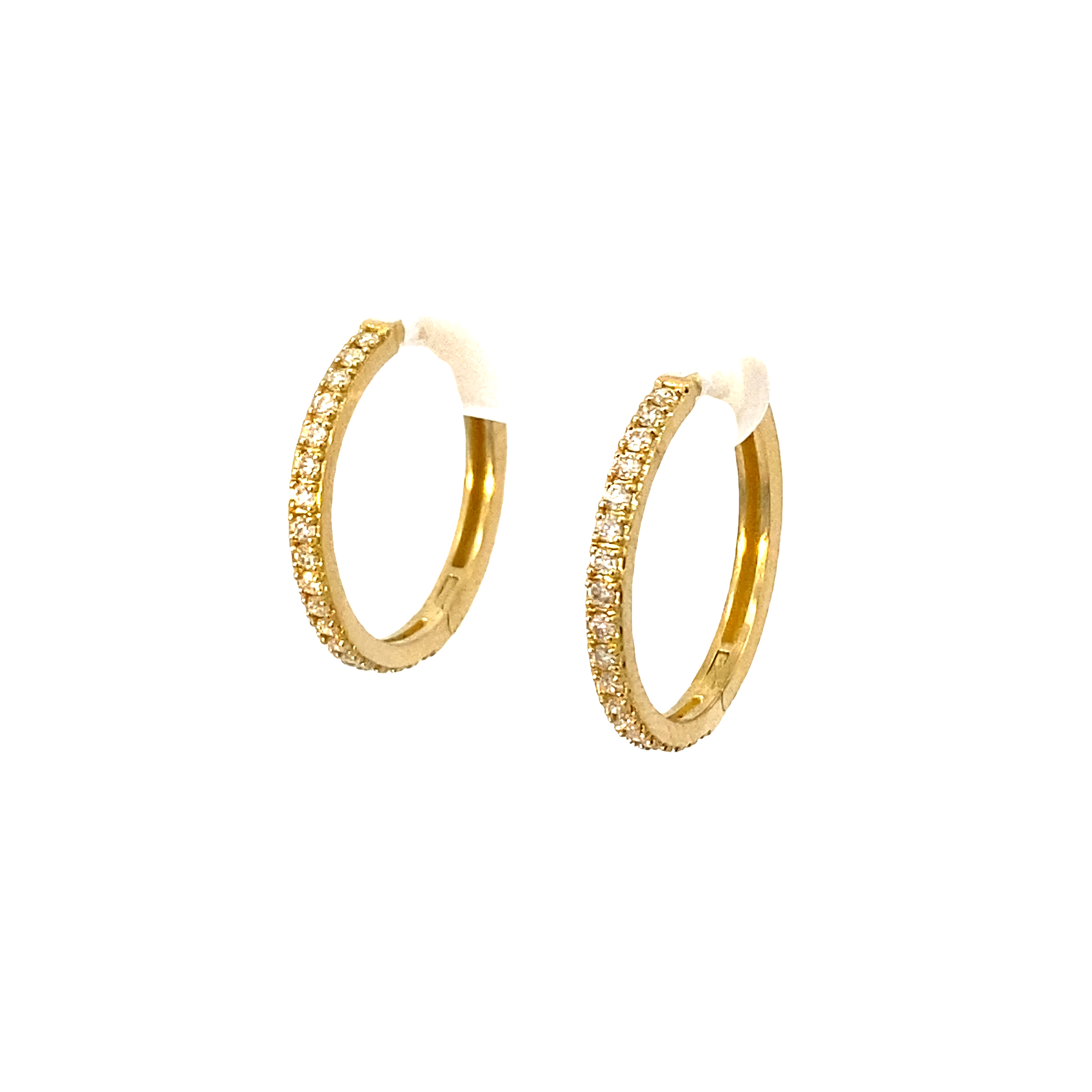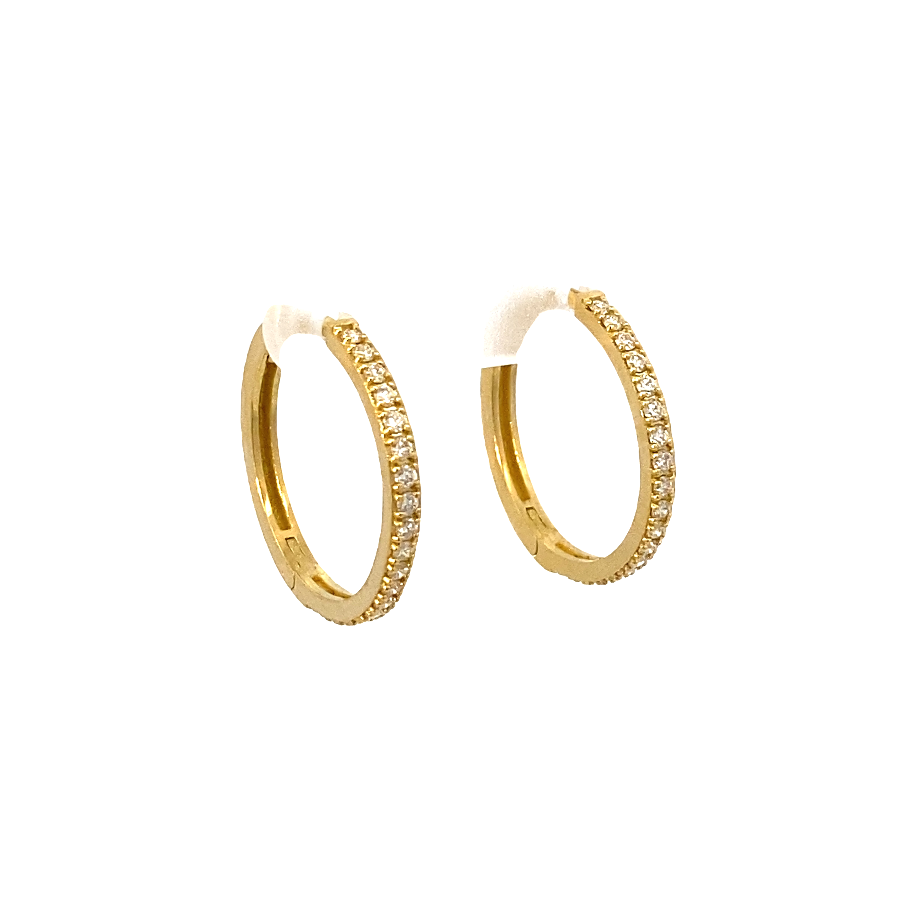 These elegant gold hoop earrings are adorned with sparkling diamonds, perfect for adding a touch of sophistication to any outfit. Their timeless design ensures they will remain a staple in your jewelry collection for years to come.
