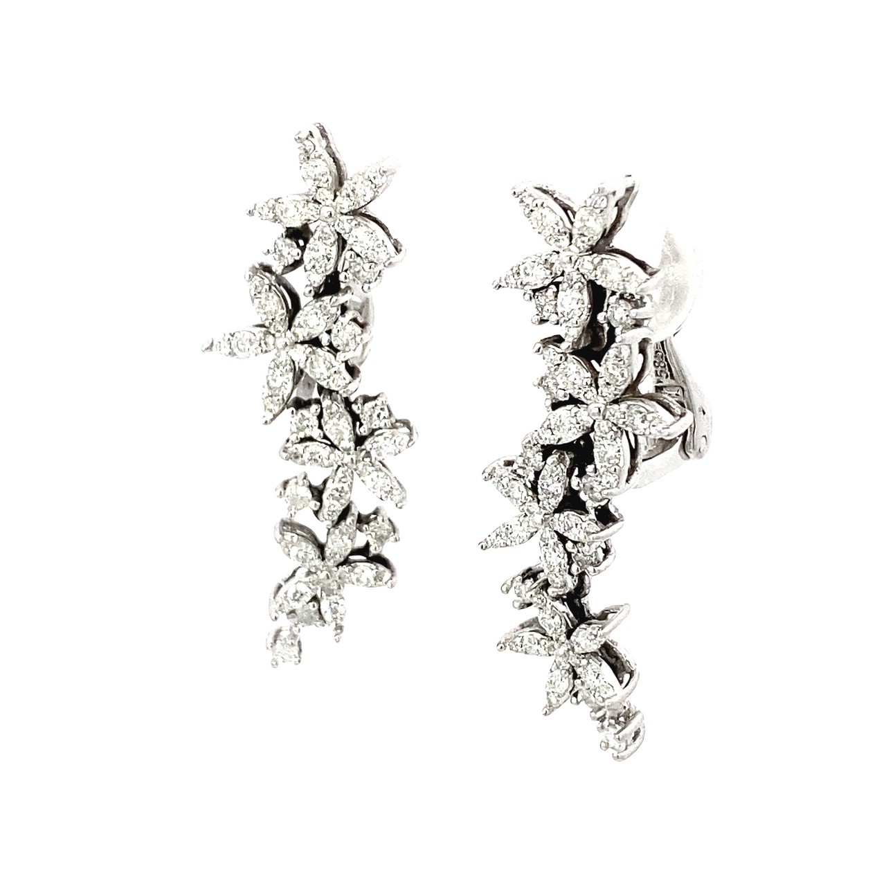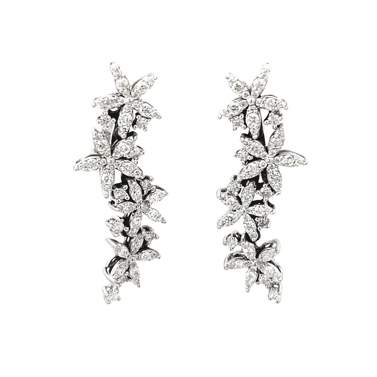 Radiate elegance and sophistication with these gorgeous diamond-studded floral earrings. Their intricate design and dazzling stones make them a timeless addition to any jewelry collection.